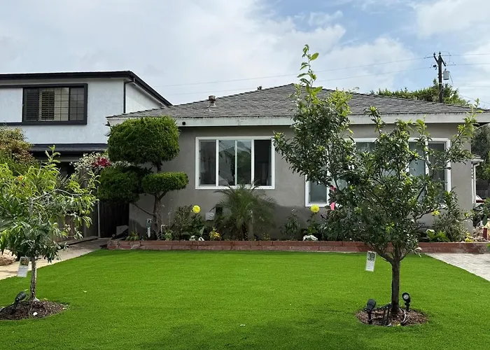 For a comfortable stay, Adorable 2Br-2Ba House With Ev & Free Parking And Family Friendly In Los Angeles offers in-room amenities like climate control, along with a television. Featuring a bidet, a tub, and a separate toilet, the bathroom also comes with hairdryers and bath sheets.